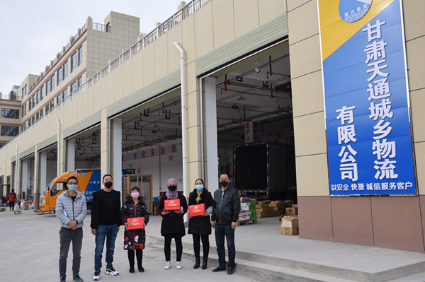在慶祝三八婦女節(jié)儀式上,集團(tuán)公司副董事長(zhǎng)鄭龍和副總經(jīng)理蘭小偉為全體女職工發(fā)放了福利并合影。
